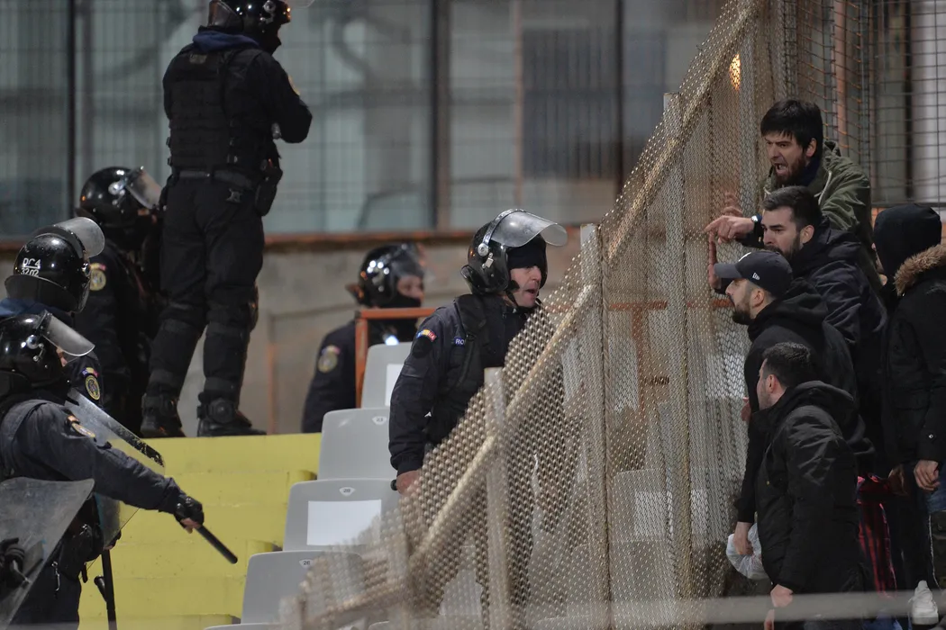 Ultrașii din PCH nu au mai suportat umilința! GALERIE FOTO | Gestul extrem al fanilor, în timpul meciului cu Viitorul. Ce au făcut înainte ca jandarmii să intervină