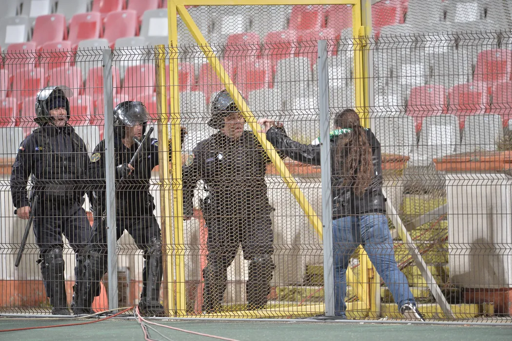 Ultrașii din PCH nu au mai suportat umilința! GALERIE FOTO | Gestul extrem al fanilor, în timpul meciului cu Viitorul. Ce au făcut înainte ca jandarmii să intervină