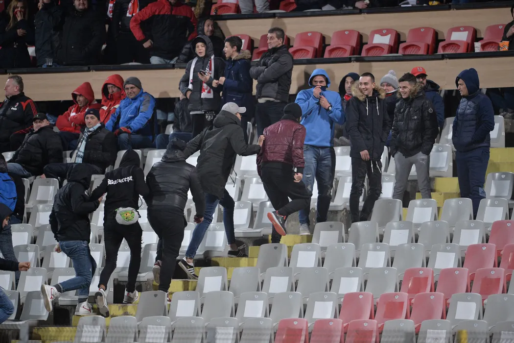 Ultrașii din PCH nu au mai suportat umilința! GALERIE FOTO | Gestul extrem al fanilor, în timpul meciului cu Viitorul. Ce au făcut înainte ca jandarmii să intervină