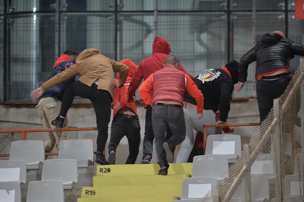 Ultrașii din PCH nu au mai suportat umilința! GALERIE FOTO | Gestul extrem al fanilor, în timpul meciului cu Viitorul. Ce au făcut înainte ca jandarmii să intervină