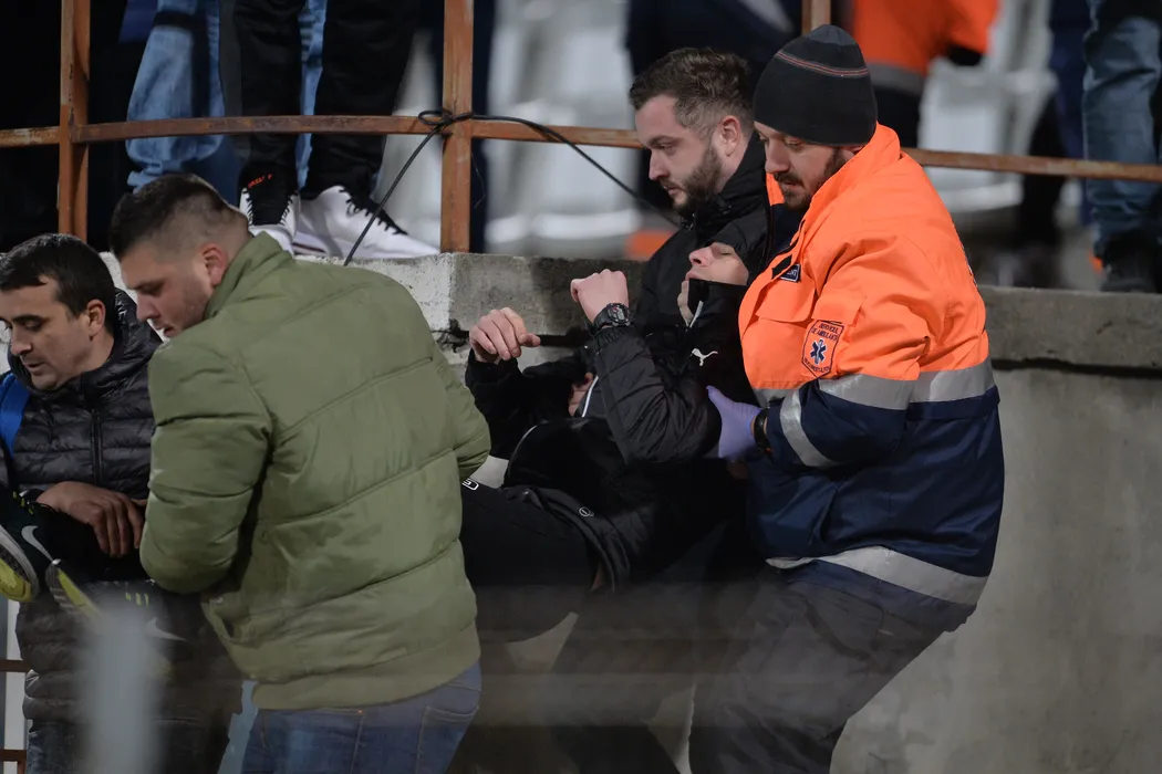Ultrașii din PCH nu au mai suportat umilința! GALERIE FOTO | Gestul extrem al fanilor, în timpul meciului cu Viitorul. Ce au făcut înainte ca jandarmii să intervină