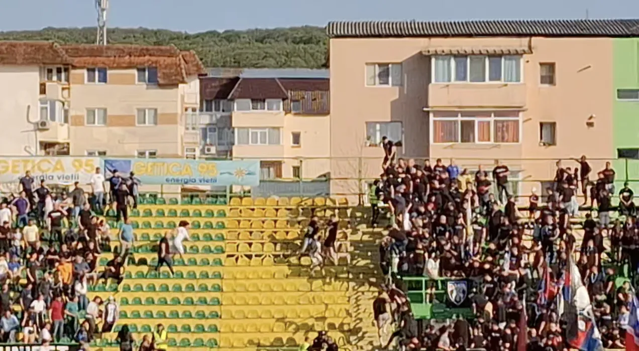 Ultrașii din Peluza Sud Steaua, atacați de fanii din Mioveni! Imagini cu bătaia cruntă din tribune