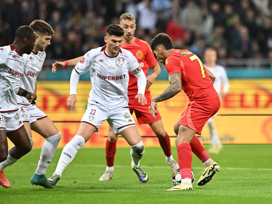 Christopher Braun, Paul Alexandru Iacob, Cristian Ionut Sapunaru si Florinel Teodor Coman in meciul de fotbal dintre FCSB si Rapid Bucuresti, din cadrul Play off-ului Superligii Superbet, desfasurat pe Arena Nationala din Bucuresti, sambata 20 aprilie 2024. © FOTO:Razvan Pasarica/SPORT PICTURES