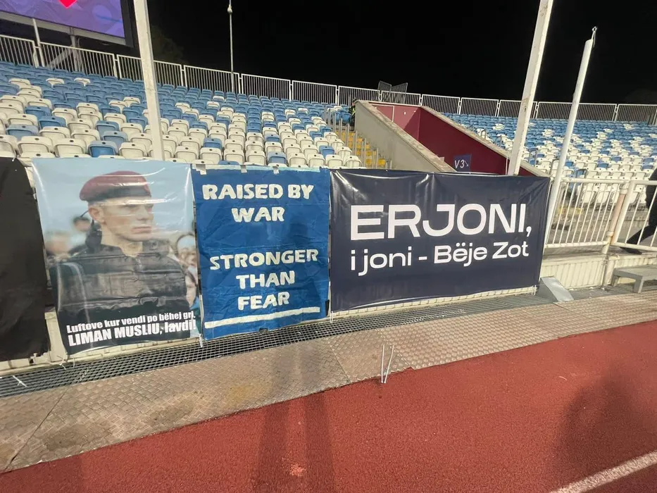Ultrașii kosovari au afișat bannerul amenințător pentru România și Serbia! Cine este Liman Musliu, veteranul de război care apare în mesajul de la meciul cu Lituania
