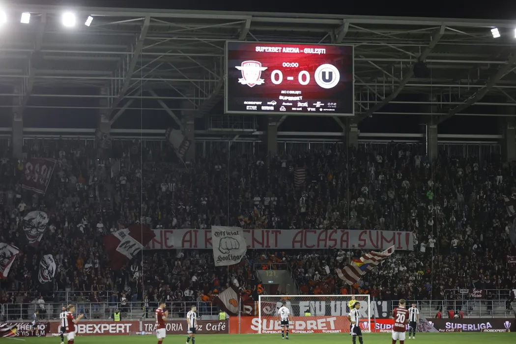 Ultrașii lui Rapid au afișat, din nou, bannere la adresa lui Marius Șumudică! Ce mesaj a apărut în Giulești. FOTO
