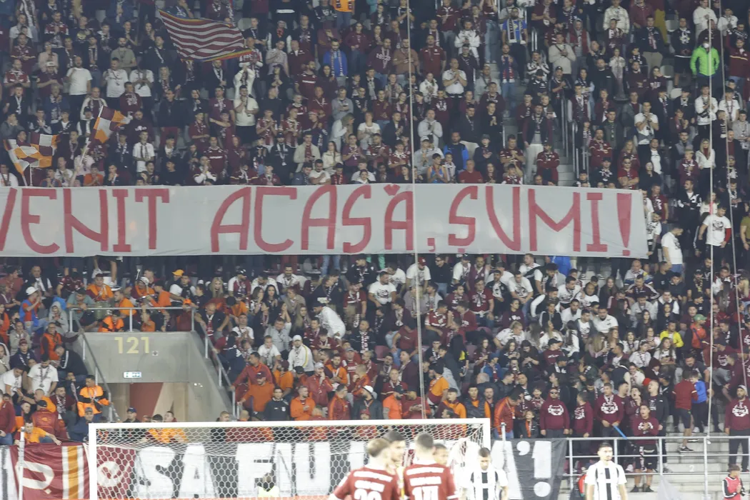 Ultrașii lui Rapid au afișat, din nou, bannere la adresa lui Marius Șumudică! Ce mesaj a apărut în Giulești. FOTO