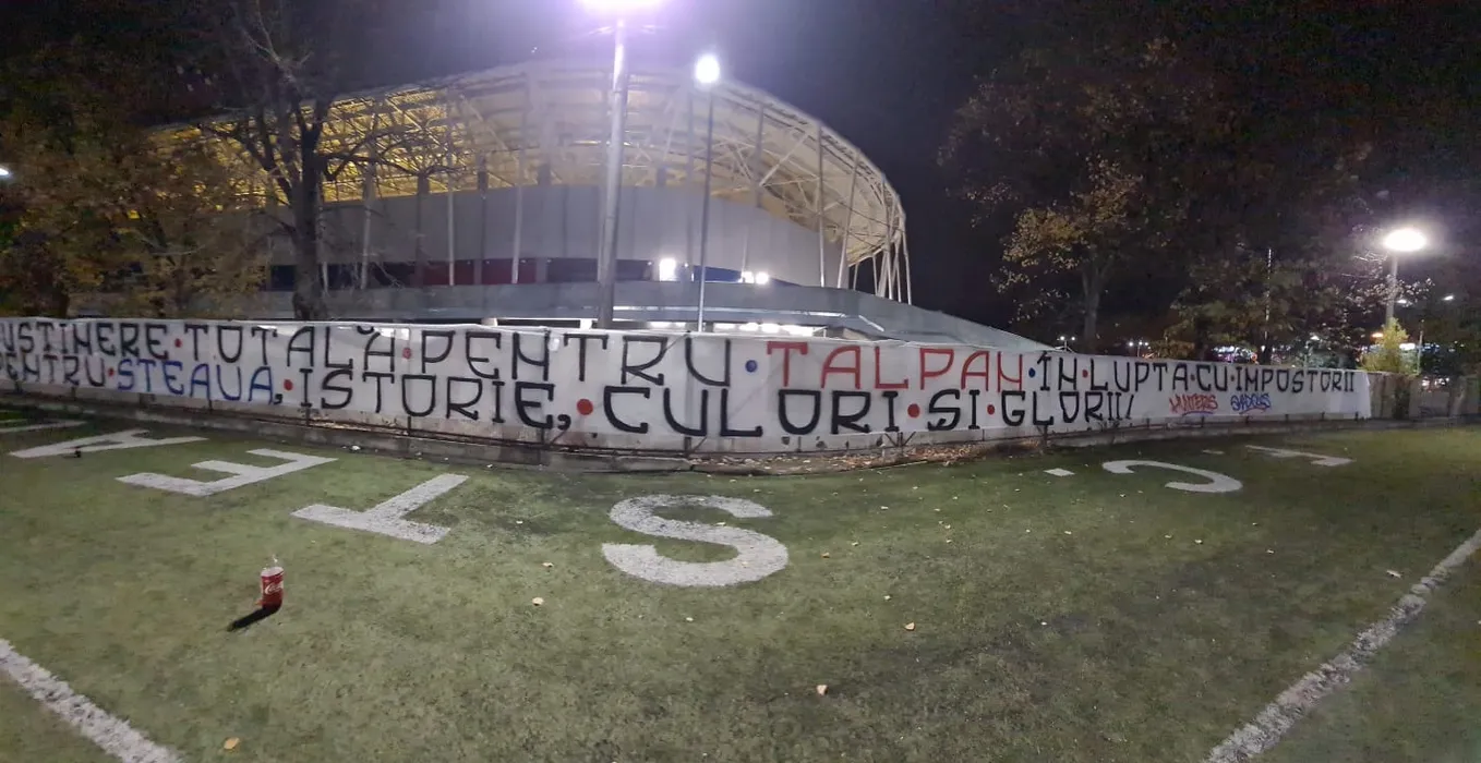 Ultrașii steliști, banner de susținere pentru Florin Talpan în lupta dintre CSA Steaua și FCSB! Suporterii au mers la stadion, dar și la tribunal | FOTO