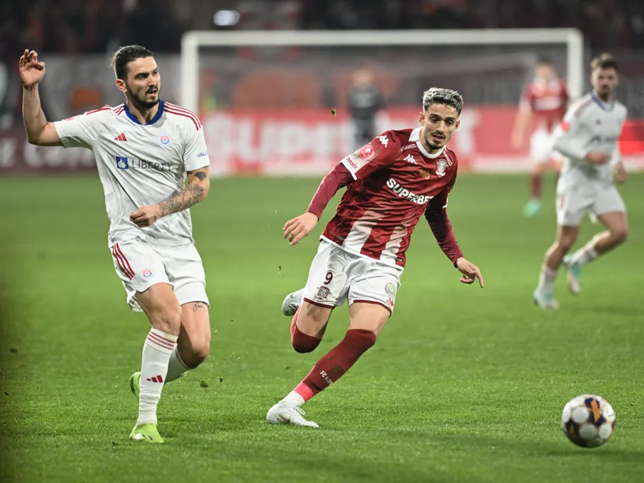 Dragan Lovric si Albion Rrahmani in meciul de fotbal dintre Rapid Bucuresti si Otelul Galati, din cadrul Superligii Superbet, desfasurat pe Superbet Arena-Giulesti din Bucuresti, sambata 3 februarie 2024. © FOTO:Razvan Pasarica/SPORT PICTURES