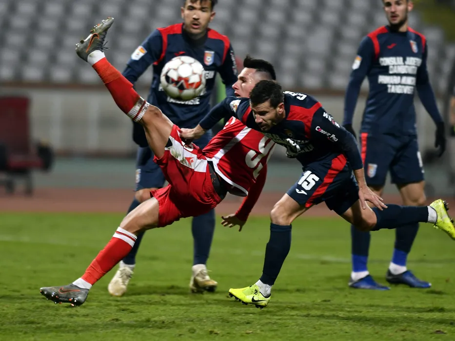 Robert Moldoveanu si Cornel Dinu in meciul de fotbal dintre Dinamo Bucuresti si Chindia Targoviste, din cadrul Ligii 1 Casa Pariurilor, desfasurat pe Stadionul Dinamo din Bucuresti, miercuri 4 decembrie 2019. © FOTO:Razvan Pasarica/SPORT PICTURES