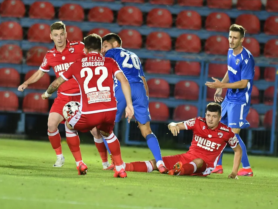 Valentin Marius Lazar, Catalin Stefan Tira, Lukas Skovajsa si Andraz Struna in meciul de fotbal dintre FC Voluntari si Dinamo Bucuresti, contand pentru play-out-ul Ligii 1 Casa Pariurilor, disputat fara spectatori pe Stadionul Anghel Iordanescu din Voluntari, duminica 2 august 2020.© FOTO:Razvan Pasarica/SPORT PICTURES