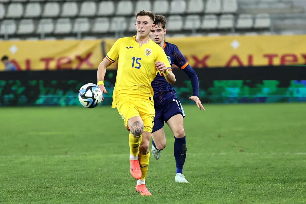 Andrei Gheorghita, de la Romania U21, suteaza in timpul meciului contra selectionatei Tarilor de Jos U21, disputat pe Complexul Sportiv National „Arcul de Triumf”, marti, 25 martie 2025. GEORGE FILIP / MEDIAFAX FOTO