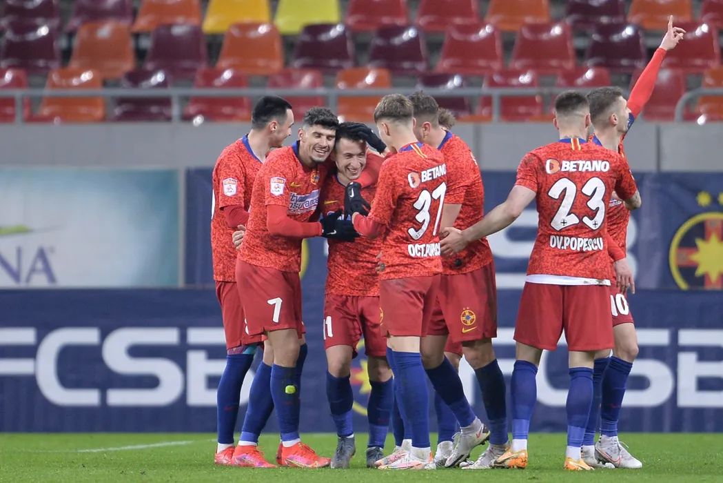Echipele FCSB (echipament rosu) si CFR Cluj s-au intalnit intr-o partida disputata in etapa 28 din Liga 1 la fotbal, vineri 19 martie 2021, pe Arena Nationala din Bucuresti. ALEXANDRU DOBRE / MEDIAFAX FOTO