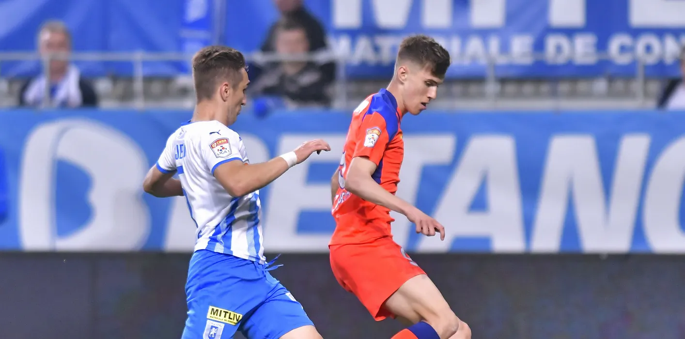 Bogdan Ilie Vatajelu si Octavian George Popescu in meciul de fotbal dintre Universitatea Craiova si FCSB, contand pentru Play-off-ul Ligii 1 Casa Pariurilor, desfasurat pe Stadionul Ion Oblemenco din Craiova, duminica 8 mai 2022. © FOTO:Razvan Pasarica/SPORT PICTURES