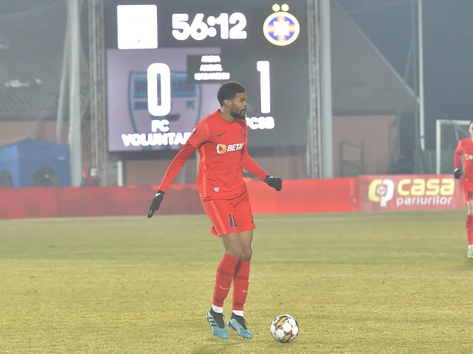 Sylas Laouari Edjouma Malcom alaturi de tabela de marcaj la meciul de fotbal dintre FC Voluntari si FCSB, contand pentru Superliga Superbet, desfasurat pe Stadionul Anghel Iordanescu din Voluntari, duminica 12 februarie 2023. © FOTO:Razvan Pasarica/SPORT PICTURES