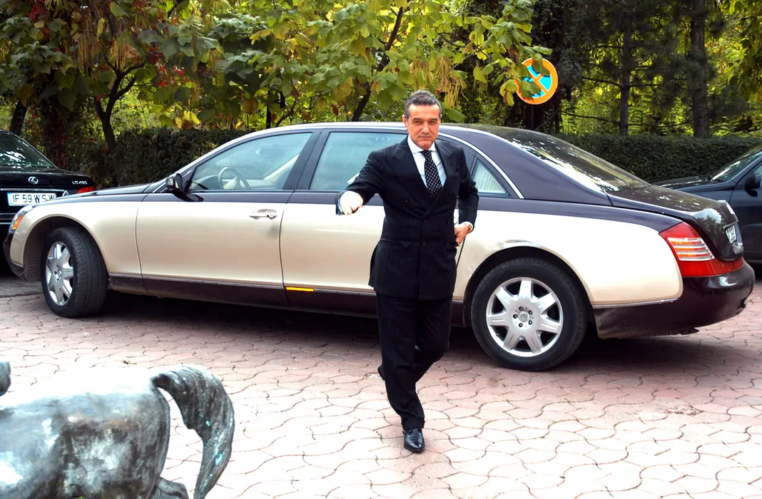 Gigi Becali (finantator Steaua Bucuresti) alaturi de masina sa Maybach.