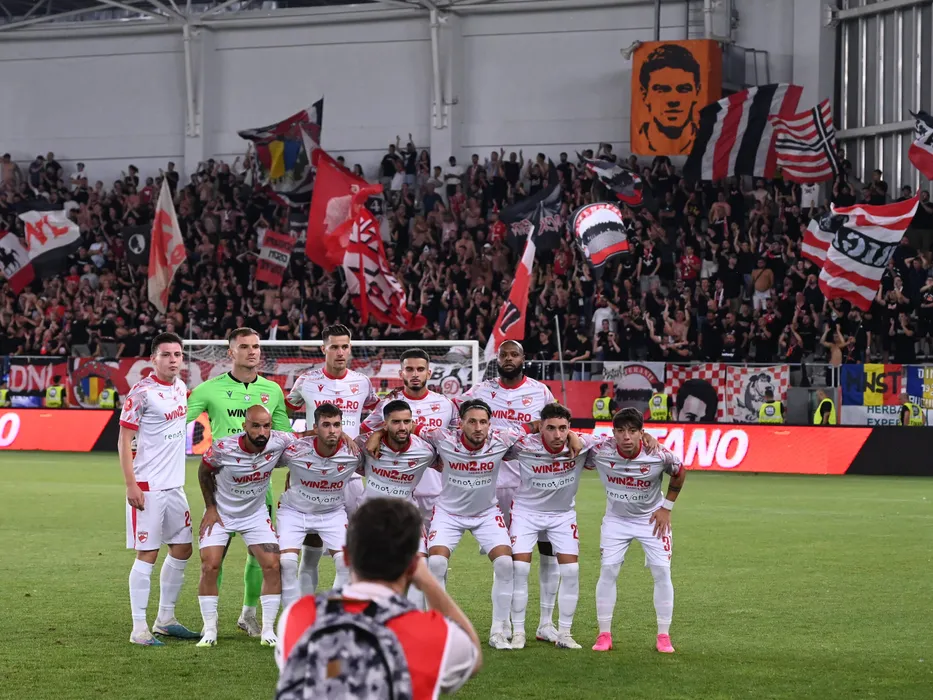 Fotbalistii dinamovisti alaturi de galerie la o fotografie de grup realizata inaintea meciului de fotbal dintre FCSB si Dinamo Bucuresti, din cadrul Superligii Superbet, desfasurat pe Stadionul National Arcul de Triumf din Bucuresti, sambata 22 iulie 2023. © FOTO:Razvan Pasarica/SPORT PICTURES