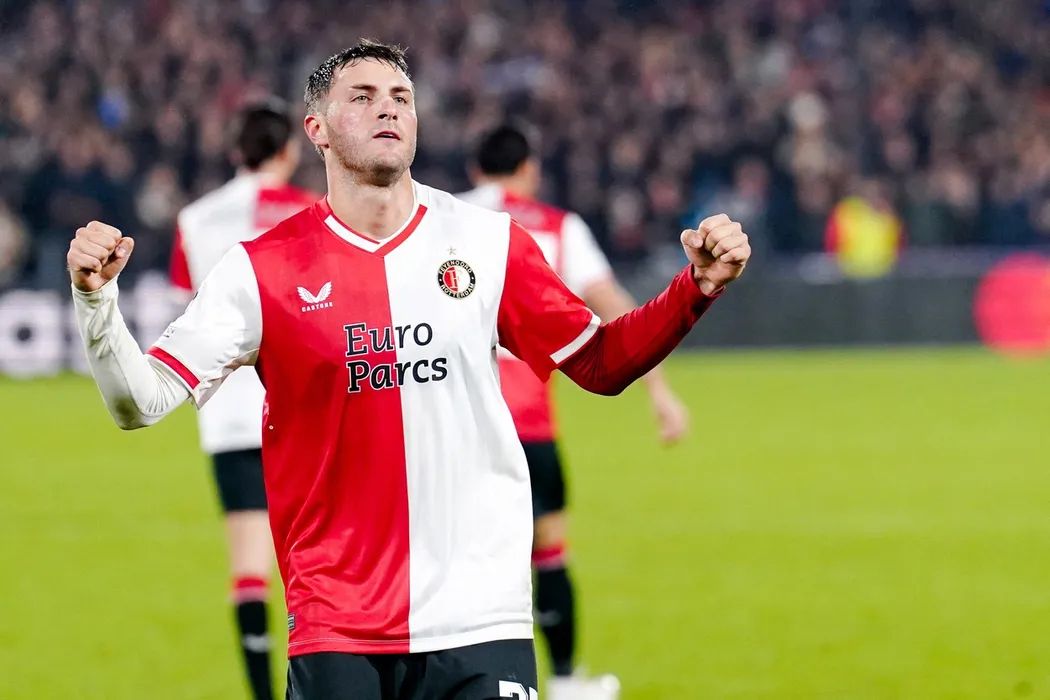 Santiago Gimenez of Feyenoord celebrates after scoring his teams third goal during the UEFA Champions League, Group E football match between Feyenoord and SS Lazio on October 25, 2023 at Stadion Feijenoord in Rotterdam, Netherlands - Photo Joris Verwijst / Orange Pictures / DPPI,Image: 816902901, License: Rights-managed, Restrictions: Hungary Out Netherlands and Belgium Out, Model Release: no