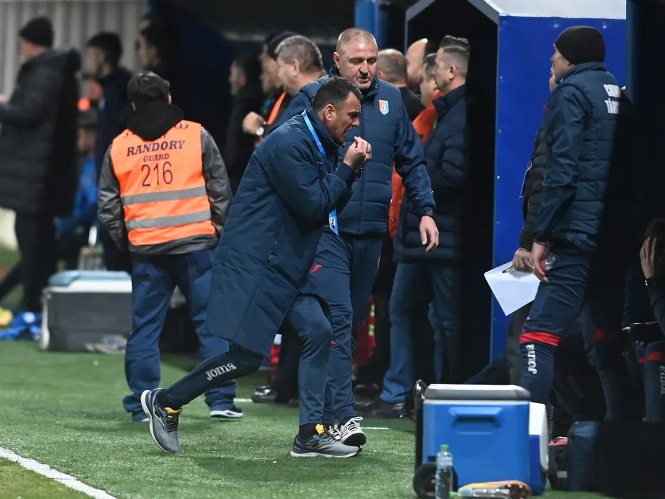 Toni Petrea reactioneaza alaturi de Cristinel Termure in meciul de fotbal dintre Chindia Targoviste si FC Voluntari, contand pentru Superliga Superbet, desfasurat pe Stadionul Ilie Oana din Ploiesti, luni 13 martie 2023. © FOTO:Razvan Pasarica/SPORT PICTURES