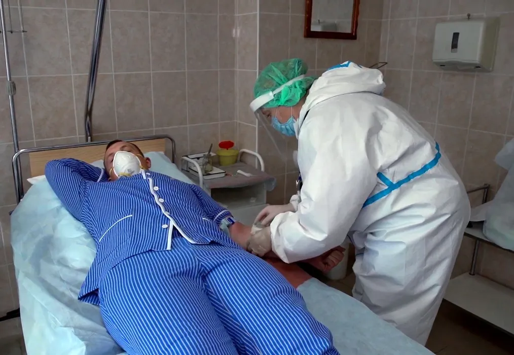 6286704 15.07.2020 In this handout photo released by the Russian Defence Ministry, a medic collects blood for antibodies to the coronavirus disease from a participant in a coronavirus vaccine trial during tests at the Burdenko Main Military Clinical Hospital in Moscow, Russia. Editorial use only, no archive, no commercial use. Ministry press service оброны Russian Federation