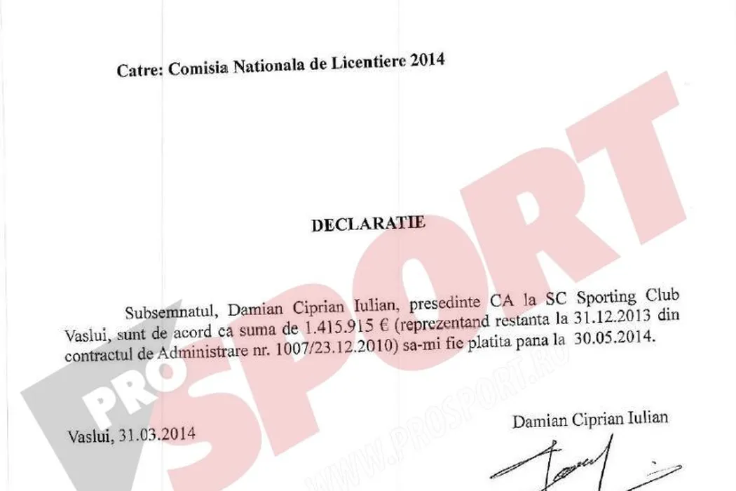 Un pas uriaș pentru Vaslui: Ciprian Damian a fost de acord să primească datoria de 1,5 milioane de euro la finalul lunii mai. Clubul poate primi licența