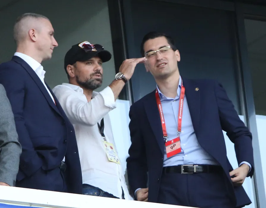 Presedintele Federatiei Romane de Fotbal (FRF), Razvan Burleanu (D), urmareste meciul Romania -Malta din Grupa F a preliminariilor Euro 2020, disputat pe stadionul Ilie Oana din Ploiesti, duminica, 8 septembrie 2019.GEORGE FILIP / MEDIAFAX FOTO