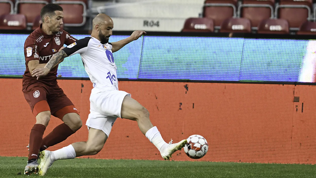 Alexandru Chipciu si Gabriel Moura in meciul de fotbal dintre CFR Cluj si Gaz Metan Medias din etapa a VII-a a play-off-ului Ligii 1, disputat pe stadionul Dr. Constantin Radulescu din Cluj-Napoca, luni, 13 iulie 2020.© FOTO:Flaviu Buboi/Sport Pictures