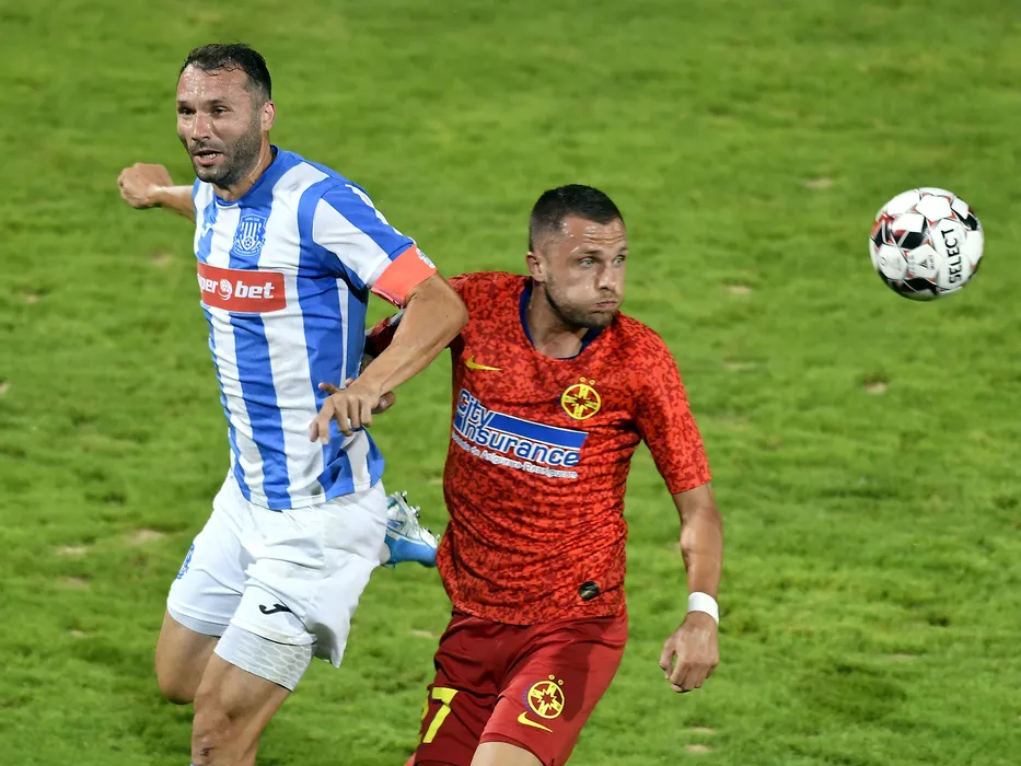 Cosmin Frasinescu si Lukasz Gikiewicz in meciul de fotbal dintre FCSB si CS Politehnica Iasi, din cadrul Ligii 1 Casa Pariurilor, desfasurat pe Stadionul Nicolae Dobrin din Pitesti, duminica 4 august 2019. © FOTO:Razvan Pasarica/SPORT PICTURES