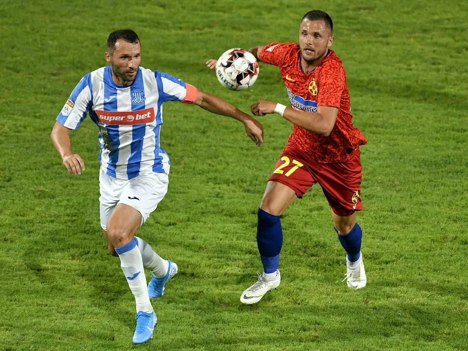 Cosmin Frasinescu si Lukasz Gikiewicz in meciul de fotbal dintre FCSB si CS Politehnica Iasi, din cadrul Ligii 1 Casa Pariurilor, desfasurat pe Stadionul Nicolae Dobrin din Pitesti, duminica 4 august 2019. © FOTO:Razvan Pasarica/SPORT PICTURES