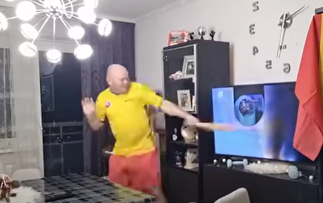 Un român a spart televizorul cu bâta în timpul meciului Bosnia – România: „Acum, să-i cumpere Dennis Man unul”