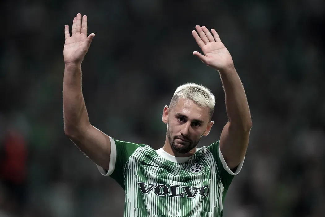 Maccabi's Omer Atzili waves to the fans as he leaves the pitch during the Champions League soccer match between Maccabi Haifa and Juventus at Sammy Ofer stadium, in Haifa, Israel, Tuesday, Oct. 11, 2022.,Image: 729821657, License: Rights-managed, Restrictions: This content is intended for editorial use only. For other uses, additional clearances may be required., Model Release: no, Pictured: Sammy Ofer