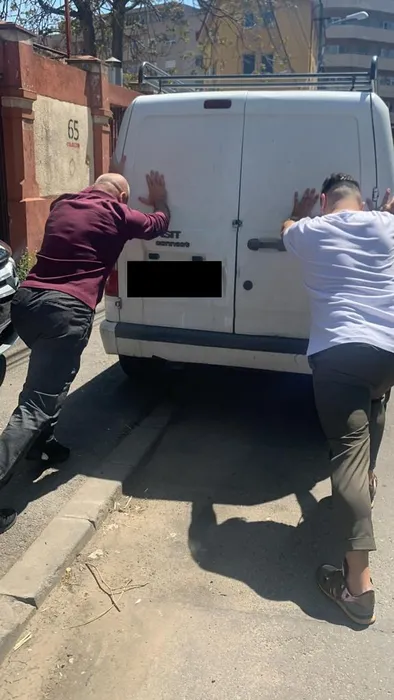 Un sportiv renumit și un milionar în euro, surprinși împingând de zor o furgonetă! FOTO