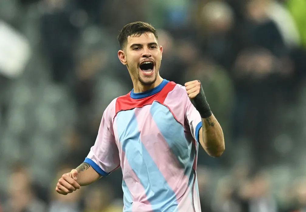 Bruno Guimaraes of Newcastle United celebrates after the full time whistle
