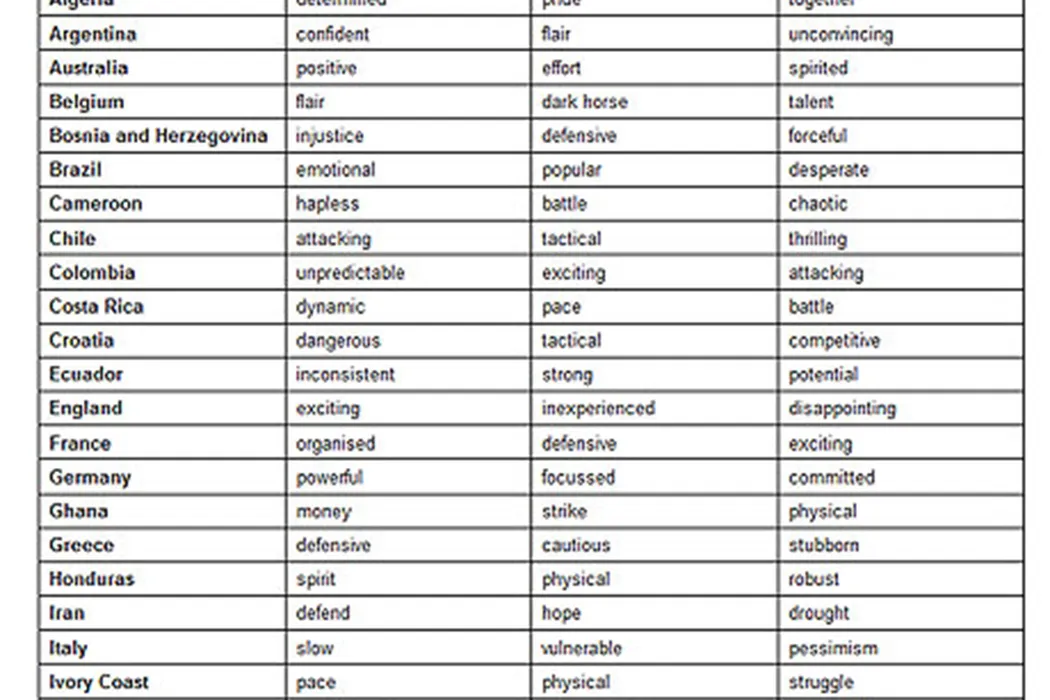Un studiu condus de britanici a descris în trei cuvinte naționalele de la Mondial. Germania, „puternică, concentrată și determinată”, Argentina, „încrezătoare, creativă, dar neconvingătoare”
