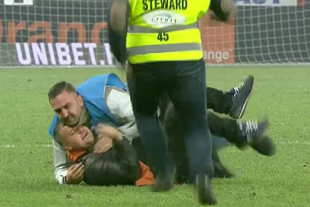 Un suporter dinamovist a pătruns pe teren la derby. Ce mesaj voia să transmită. FOTO
