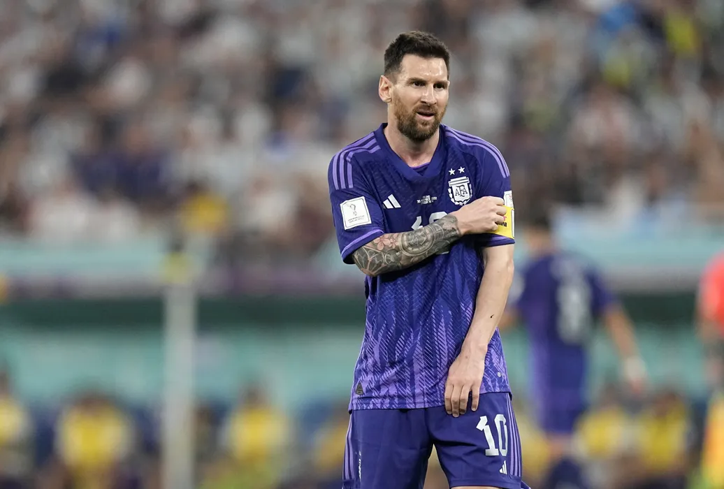Argentina's Lionel Messi looks out during the World Cup group C soccer match between Poland and Argentina at the Stadium 974 in Doha, Qatar, Wednesday, Nov. 30, 2022. (AP Photo/Ariel Schalit)