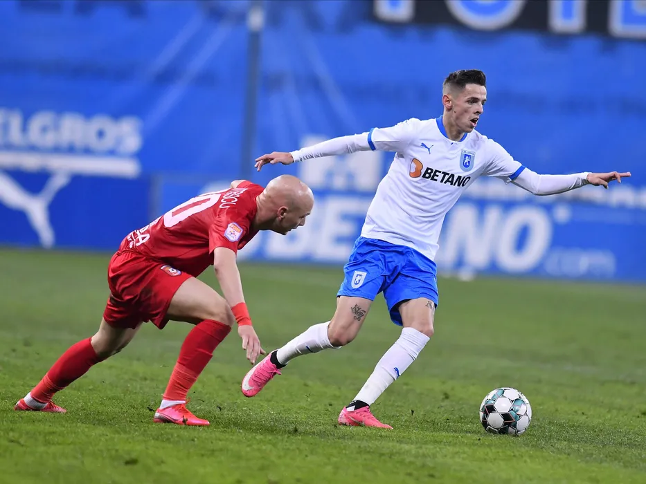 Denis Constantin Dumitrascu si Alexandru George Cimpanu in meciul de fotbal dintre Universitatea Craiova si Chindia Targoviste, contand pentru Liga 1 Casa Pariurilor, desfasurat fara spectatori pe Stadionul Ion Oblemenco din Craiova, vineri 6 noiembrie 2020. © FOTO:Razvan Pasarica/SPORT PICTURES