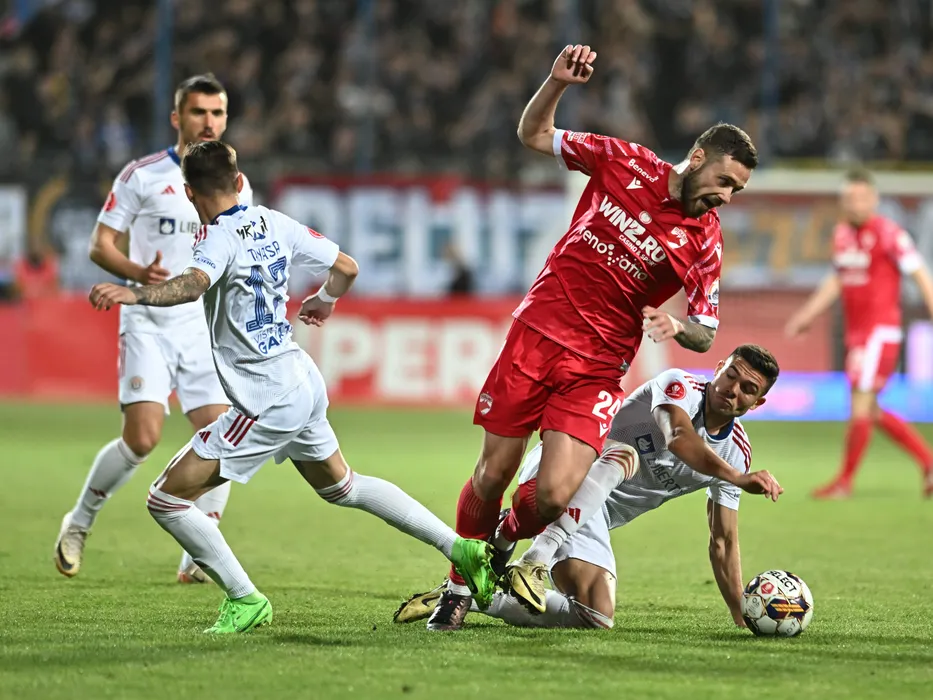 Darko Velkovski si Samuel Teles Pereira Nunes Da Silva in meciul de fotbal dintre Otelul Galati si Dinamo Bucuresti, din cadrul Play-out-ului Superligii Superbet, desfasurat pe Stadionul Otelul din Galati, luni 8 aprilie 2024. © FOTO:Razvan Pasarica/SPORT PICTURES