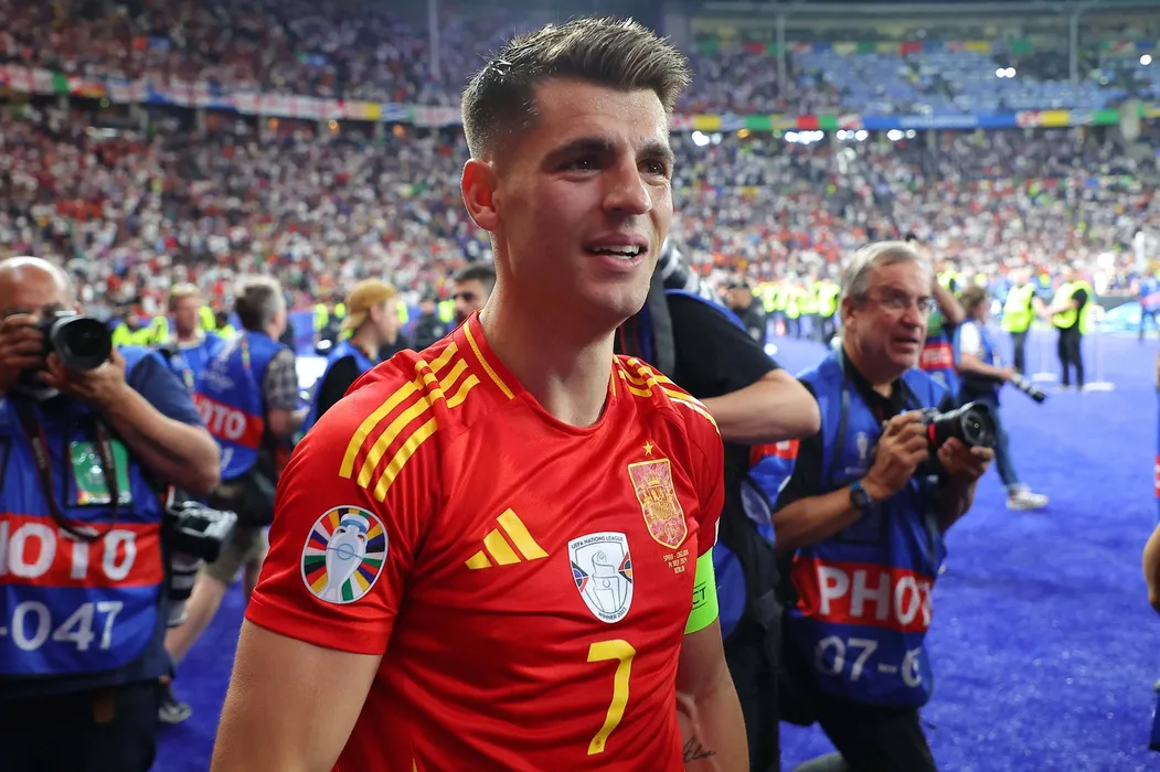 Spanien - England / UEFA EURO, EM, Europameisterschaft,Fussball 2024 Finale Berlin, 14.07.2024, Olympiastadion, UEFA EURO 2024 Germany, Finale, Spanien - England 2:1 0:0, Im Bild: Alvaro Morata 7, ESP 1 , *** Spain England UEFA EURO 2024 Final Berlin, 14 07 2024, Olympiastadion, UEFA EURO 2024 Germany, Final, Spain England 2 1 0 0 , In the picture Alvaro Morata 7, ESP 1 ,,Image: 890101068, License: Rights-managed, Restrictions: Credit images as "Profimedia/ IMAGO", Model Release: no