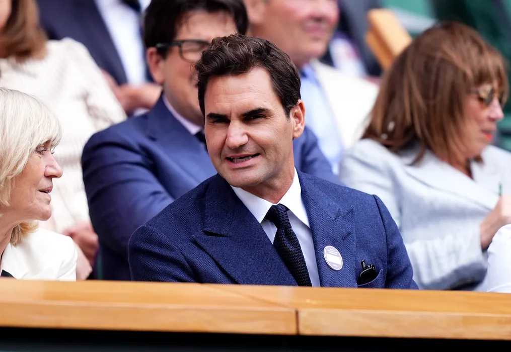 07 July 2025, United Kingdom, London: Former tennis player Roger Federer sits in the Royal Box on day eight of the 2025 Wimbledon Championships at the All England Lawn Tennis and Croquet Club, London. Photo: Mike Egerton/PA Wire/dpa