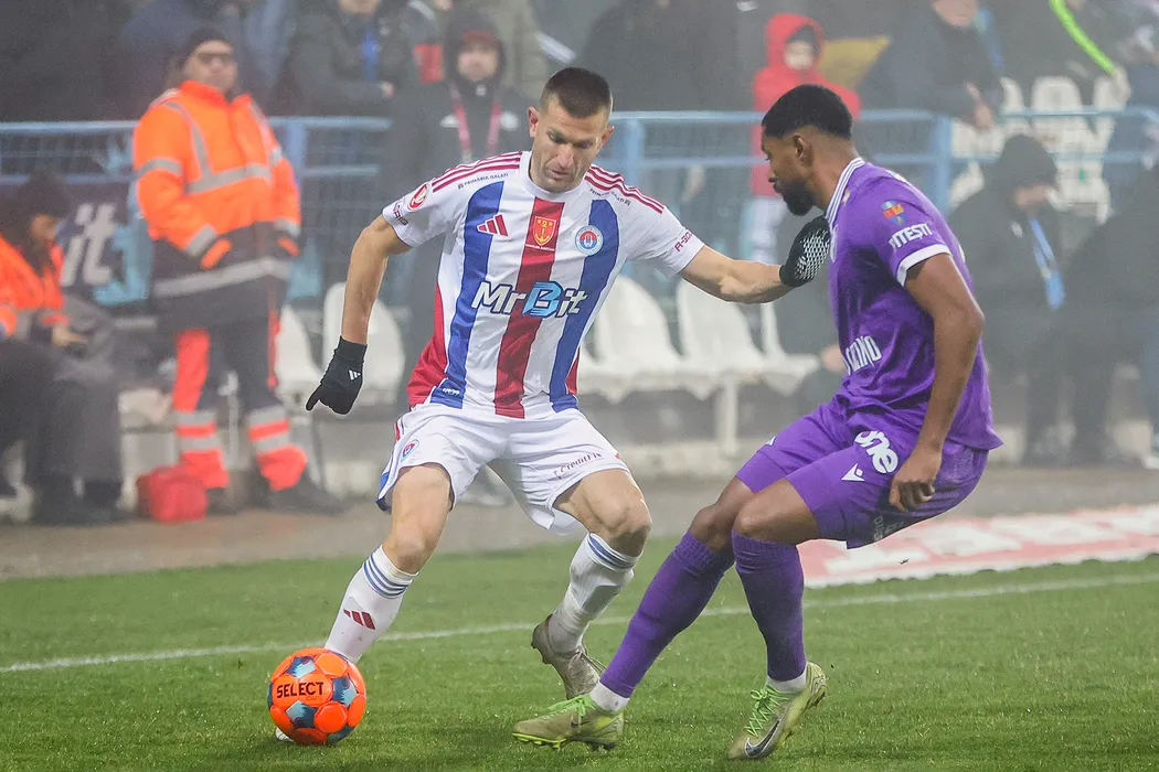 Milen Zhelev si Adel Bettaieb in meciul de fotbal dintre SC Otelul Galati si FC Arges, contand pentru Superliga Superbet, desfasurat pe Stadionul Otelul din Galati, sambata 20 decembrie 2025. © FOTO:Sorin Pana/SPORT PICTURES