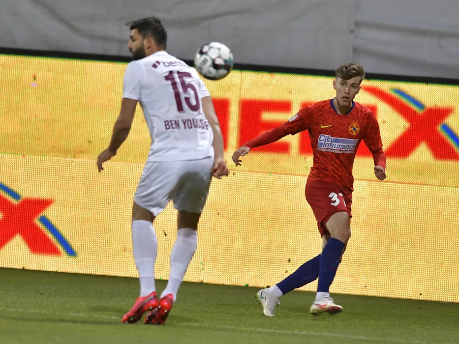 Syam Habib Ben Youssef si Octavian George Popescu in meciul de fotbal dintre FCSB si CFR Cluj, contand pentru Play-off-ul Ligii 1 Casa Pariurilor, desfasurat fara spectatori pe Stadionul Marin Anastasovici din Giurgiu, luni 3 mai 2021. © FOTO:Razvan Pasarica/SPORT PICTURES