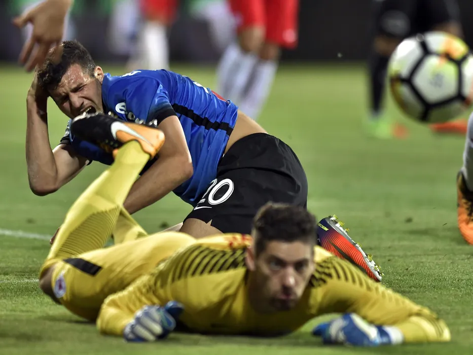George Tucudean la pamant in meciul de fotbal dintre FC Viitorul Constanta si FC Salzburg, contand pentru playoff-ul Ligii Europa, disputat joi 17 august 2017 pe stadionul central al academiei Gheorghe Hagi, Ovidiu. Razvan Pasarica/SPORT PICTURES
