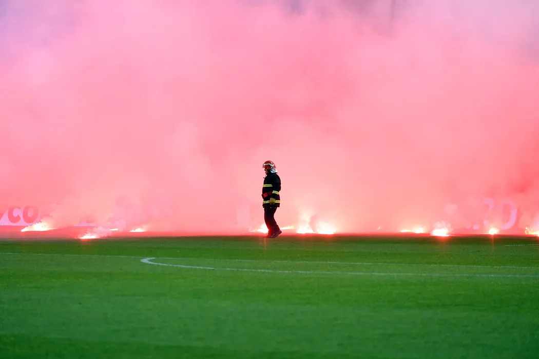 Spectacol incendiar inainte de meciul de fotbal dintre Dinamo București și UTA Arad, contând pentru SUPERLIGA SUPERBET, desfășurat pe Stadionul Arcul de Triumf din București, vineri 8 martie 2024. © FOTO: Simion MECHNO/SPORT PICTURES