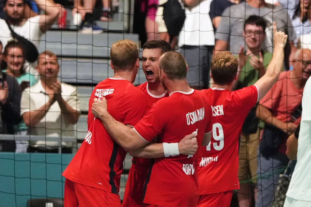Olympic Games, Olympische Spiele, Olympia, OS Paris 2024, Olympische Spiele 2024, 26.07-10.08.2024 , Paris Süd Arena , Paris, Handball Männer Vorrunde Norwegen -Ungarn Norwegen jubeln *** Olympic Games Paris 2024, Olympic Games 2024, 26 07 10 08 2024 , Paris South Arena , Paris, Handball Men Preliminary Round Norway Hungary Norway cheer,Image: 894723439, License: Rights-managed, Restrictions: Credit images as "Profimedia/ IMAGO", Model Release: no