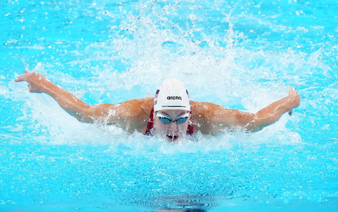 27 July 2024, France, Nanterre: USA's Gretchen Walsh competes in the Women's 100m Butterfly Heats at Paris La Defense Arena. Photo: John Walton/PA Wire/dpa