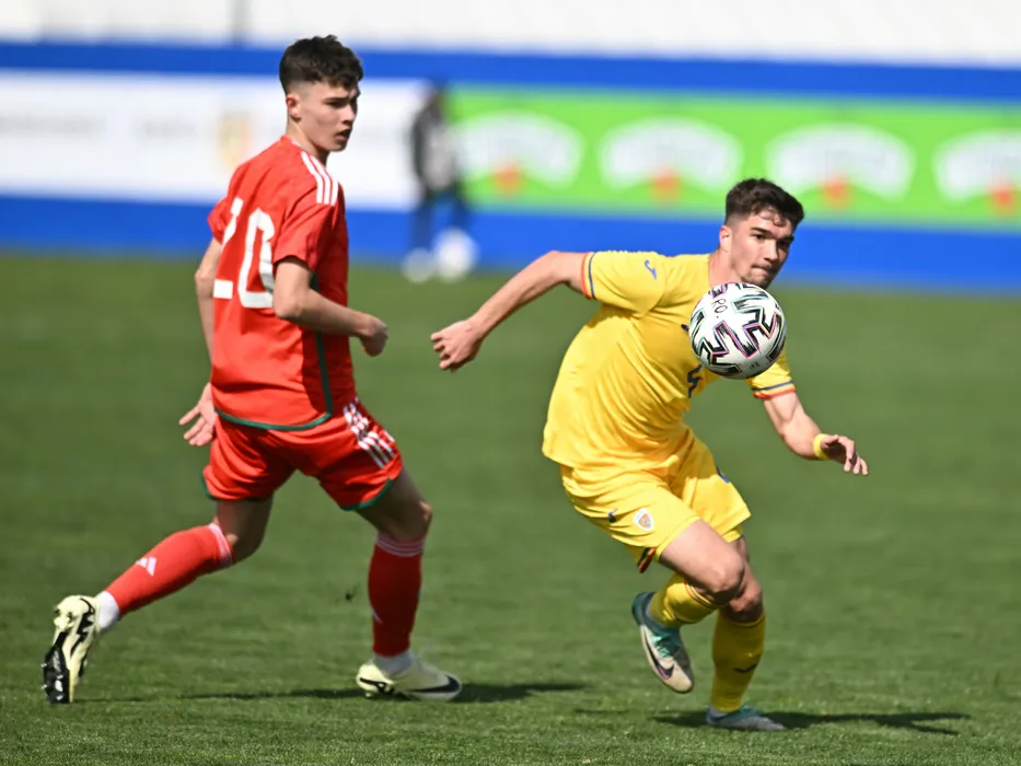 Luis Gardner si Matyas Laszlo in meciul de fotbal dintre Romania U17 si Tara Galilor U17, din cadrul Turneului European de Elita 2024, desfasurat la Centrul National de Fotbal de la Buftea, miercuri 20 martie 2024. © FOTO:Razvan Pasarica/SPORT PICTURES