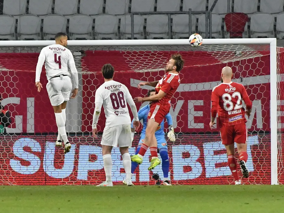 Leonardo Da Costa Bolgado si Denis Gratian Harut in meciul de fotbal dintre Sepsi OSK Sfantu Gheorghe si FC CFR 1907 Cluj, contand pentru SuperLiga Superbet, desfasurat pe Stadionul SEPSI Arena OSK din Sfantu Gheorghe, vineri 28 februarie 2025. © FOTO: Bogdan Balas/SPORT PICTURES