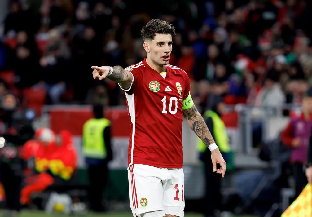 BUDAPEST, HUNGARY - MARCH 27: Dominik Szoboszlai of Hungary reacts during the UEFA EURO 2024 qualifying round group B match between Hungary and Bulgaria at Puskas Arena on March 27, 2023 in Budapest, Hungary. (Photo by Laszlo Szirtesi/Getty Images)