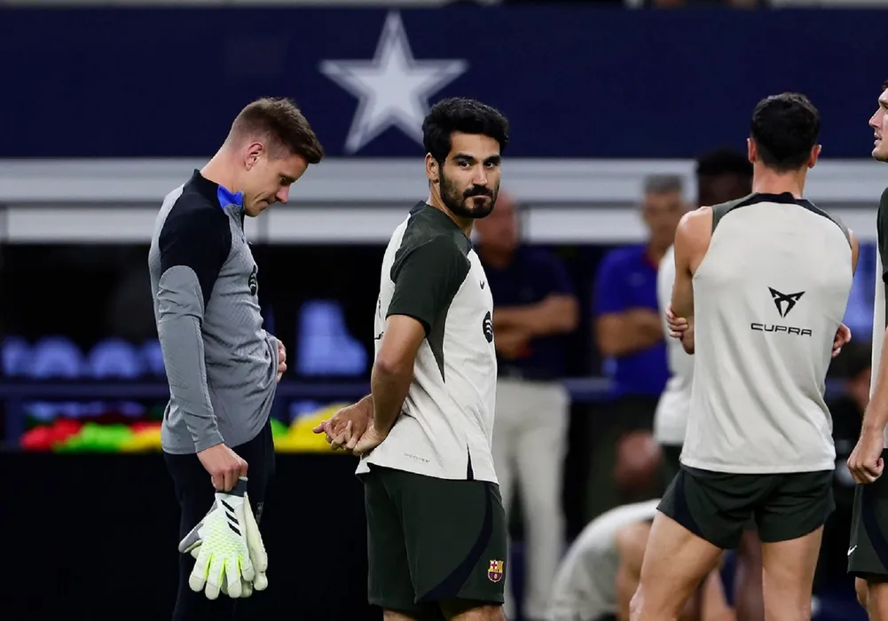 Barcelona preseason session in Texas. In the picture, Ter Stegen and Gundogan.//MARCA_sipa.184/Credit:MARCA/SIPA/2307311312,Image: 793223768, License: Rights-managed, Restrictions: , Model Release: no