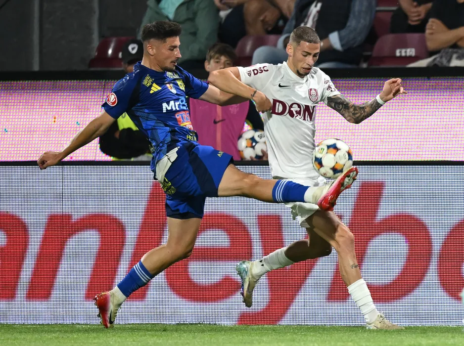 Andres Emil Sfait si Andrei Cristian Dorobantu in meciul de fotbal dintre FC CFR 1907 Cluj si AFC Unirea 04 Slobozia, contand pentru Superliga Superbet, desfasurat pe Stadionul Dr.Constantin Radulescu din Cluj-Napoca, duminica 13 iulie 2025. © FOTO:Flaviu Buboi/SPORT PICTURES